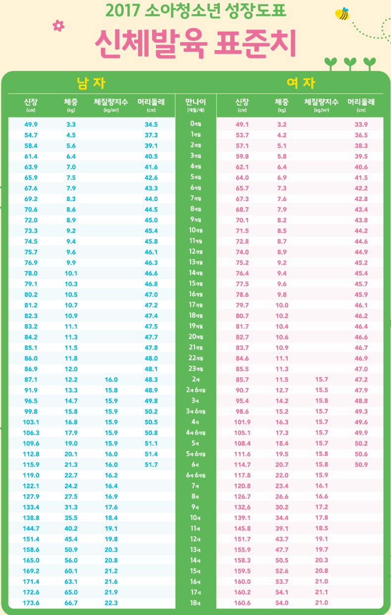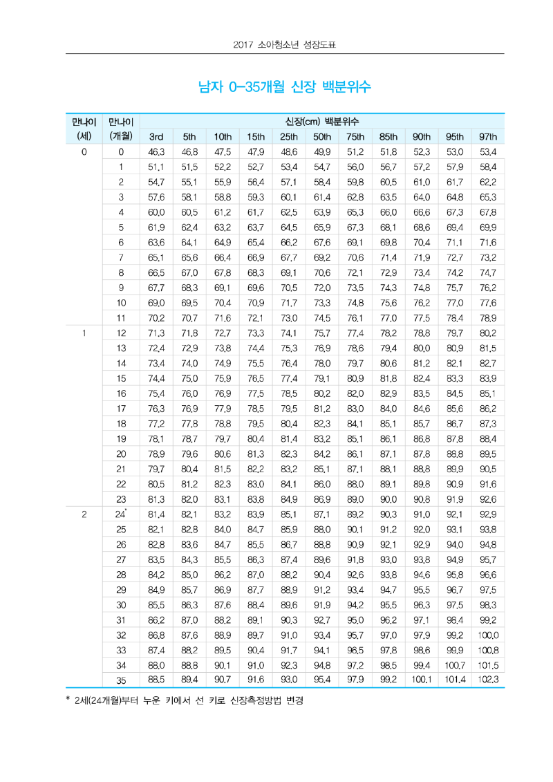 2017 소아청소년 성장도표 신체발육 표준치(최신판, 10년마다 발표)